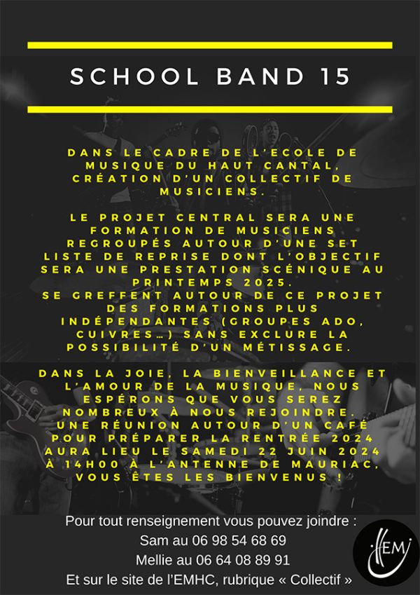 Dans le cadre de l’Ecole de Musique du Haut Cantal, création d’un collectif de musiciens.