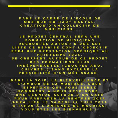21/06 : fête de la musique (lieu à définir). -